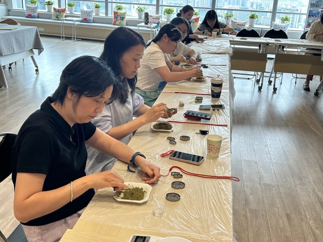 为弘扬中华优秀传统文化,丰富党员群众的精神文化生活,增强党群之间的凝聚力与向心力。6月20日中午东泰民盈·国贸党群服务中心开展午间小沙龙:和香为牌,风雅成韵——非遗手工制作活动。本次邀请专业老师现场指导,带领党员群众一同走进香牌制作的奇妙世界。