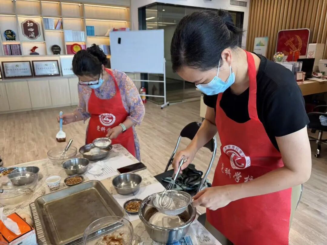 随着烤箱“叮”的一声,一块块外酥内软、坚果香脆的布朗尼新鲜出炉,现场瞬间被成就感与香气填满。活动最后,党员群众将成品打包分享,并拍照记录这一温馨时刻。党员王女士笑着说:“平时工作紧张,这样的活动既能放松心情,又能学到新技能,希望多举办类似课程!