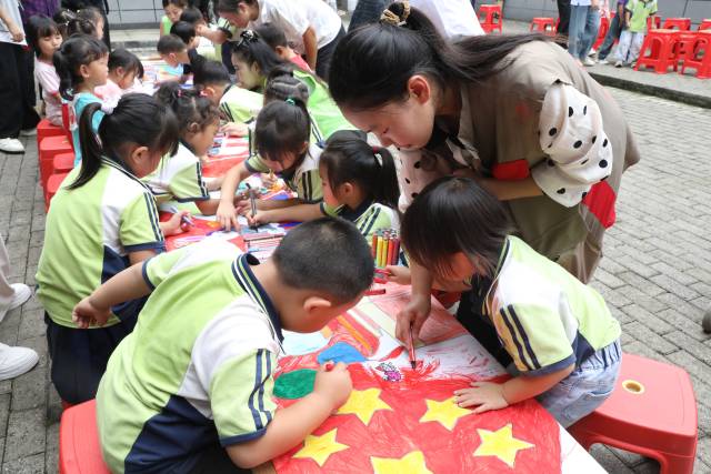 活动中,“老幼结对绘长卷”环节成为全场焦点。在社工的引导下,小朋友们主动走到老人身边,发出邀请:“奶奶,您愿意和我一起画画吗?”拿到画笔后,老人们握着孩子的小手,一笔一画勾勒出“双节图景”:天安门城楼的红墙金瓦、穿越群山的高铁列车、挂在夜空的皎洁明月,渐渐在画卷上鲜活起来。72岁的李爷爷微笑着表示:“这还是我第一次和小朋友一起画画,手虽然有点抖,但心里亮堂得很,像又多了个小孙孙。”每一笔色彩不仅见证着代际间的默契与情谊,更藏着粤黔两地协作惠民的暖心故事。