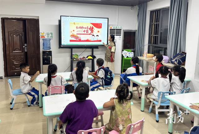 “原来红领巾是红旗的一角,是革命先烈用鲜血染成的!”贵苑社区三年级学生志真举着小手激动地说。在少先队知识课堂上,莞铜社工借助短视频展示,从少先队创立背景、发展历程讲到建队日的意义,用“小英雄雨来”“红领巾的由来”等小故事,让历史故事变得生动易懂。