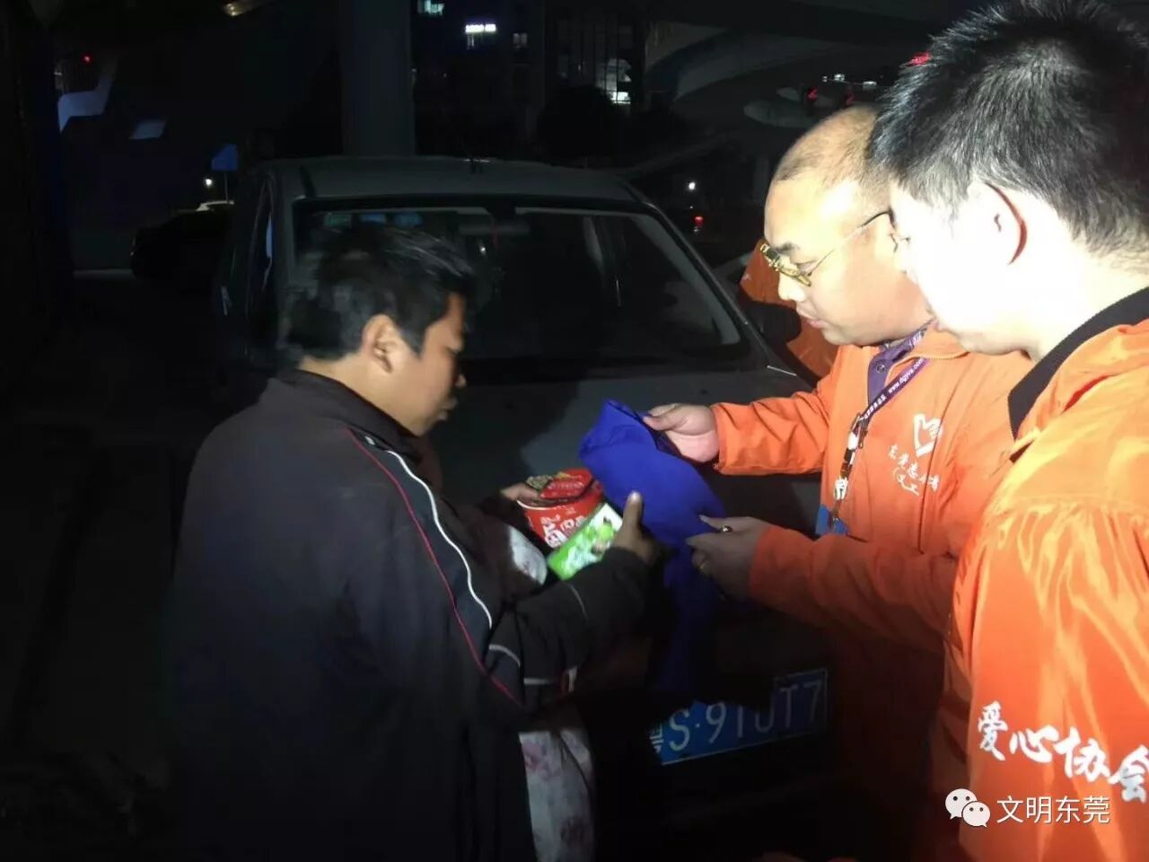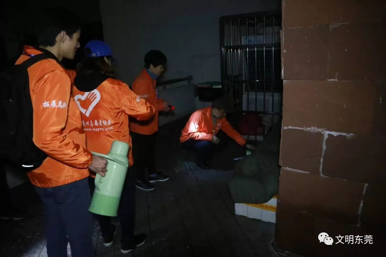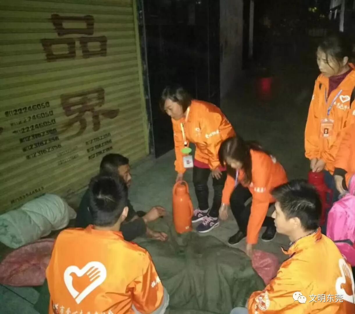 受冷空气影响, 连日来,东莞气温骤降, 北风凛冽。 1月8日东莞发布寒冷橙色预警信号 今日凌晨最低温度降至4℃ 在寒冷的季节里 东莞仍有游荡于街头巷尾的流浪乞讨者 靠单薄衣裳艰难度日 …… 为关爱这个特殊群体 1月8日晚,东莞市救助站、社工、志愿者 冒着寒风走上街头 为流浪者送上食物、棉被 开展“冬季送温暖”行动 劝导流浪乞讨人员和露宿者 到救助站过冬 为 流浪者 送食物和棉被 1月8日晚8时,东莞市救助站工作人员和社工、志愿者兵分四路,在莞城、东城、南城、万江4个街道进行“拉网式”搜寻救助流浪乞讨人员和露宿者,他们准备了军大衣、棉被、方便面、热水和保温杯,送给流浪者过冬物资。 市救助站工作人员和社工、志愿者开展“冬季送温暖”行动。出发前,一切准备就绪 为流浪者送上厚衣服过冬 给流浪者送棉被 在莞城八达路人行天桥旁边的大楼二层过道上,每隔两到三米就可以看到流浪者的身影。在一个拐弯的角落里,有位60多岁的流浪者露宿在店铺门前。他光着脚蜷缩在单薄的被褥里瑟瑟发抖。大家连忙走上前,给他盖上新被褥,并为他送上泡面。 这位流浪者靠拾荒为生,在此已有一年多了。“天气这么冷,要不要送你去救助站啊?可以免费吃住的。”市救助站负责人张相斌对他说,可流浪汉却摇摇头。大家只好叮嘱他要注意保暖,并向他发放了宣传单页,让他有需要时联系救助站。 给流浪者送上热水和食物 关切问候流浪者身体情况 再往前走10多米,一位头发花白、身体干瘦的老者睡在湿漉漉的地面上。经询问,他姓吴,今年快70岁了。大家送给他保温杯,并倒上热水,送去新被褥。对此,他对大家点点头表示感谢。 市救助站负责人张相斌表示,东莞“寒冬送温暖”行动从2017年11月15日开始,将持续至2018年3月15日。此次是2018年第一轮“寒冬送温暖”救助行动,旨在保障困难群众做好防寒保暖工作,及时开展街头救助行动,为街面流浪乞讨者提供救助服务。 确保 困难群众 吃得饱、穿得暖 据市气象部门预报,东莞8日起受寒潮影响,北风加大,气温急降。市气象台昨日12时07分将寒冷黄色预警信号升级为橙色,10-12日早晚气温仍低于5°C-7°C。 给流浪者分别送上棉被和食品 市民政局于1月8日14时启动低温冰冻灾害救灾预警响应。各镇街民政部门要切实做好防寒保暖工作。低温天气下,要切实保障困难群众和民政服务对象吃得饱、穿得暖。 给流浪者送上棉被和食品 目前,市民政局实行24小时值班,随时应对突发事件。市所有应急避灾场所全面开放,市救助站连同社工24小时进行路面巡查,劝导流浪人员进站接受救助,不愿进站的,发放棉衣、棉被和食品。各镇街(园区)组织多个探访慰问组深入困难群体家中进行走访慰问。 全市“寒冬送温暖”街面救助外展服务 已达 124 次 服务街面流浪乞讨人员 201 人 / 次 发放棉被 63件 棉衣 73件 毛毯 41件 保温瓶 22个 饼干 202袋 泡面 99份 饮用水 159件 以上数据截至2018年1月8日 市镇两级应急避灾中心开放 有需要的群众可就近求助 目前,东莞市一级的应急避灾中心设立在市救助站,可同时容纳1000人求助。而镇街应急避灾中心一般都设立在镇街敬老院、社区综合服务中心、学校等,可容纳几十人到五百人不等。有需要的群众,可以就近前去求助,对求助者没有任何户籍限制。 道滘镇御寒避灾点储备着棉被等应急物品 温馨提醒 如果您在街上发现有需要帮助的流浪乞讨、街头露宿人员,可通过电话或网络的方式联系驻救助站的街角社工进行报料。报料时请提供流浪乞讨人员的所在位置、外貌特征、精神状况等信息,并留下您的联系方式,街角社工将会第一时间与您取得联系,以便及时采取救助行动。