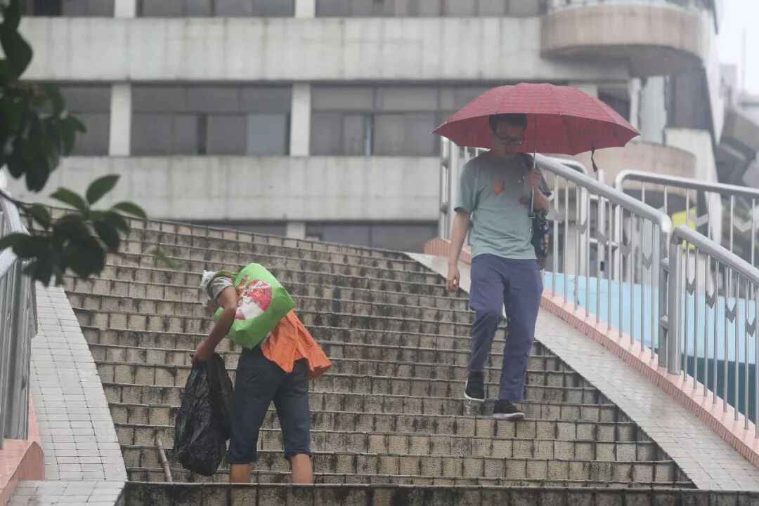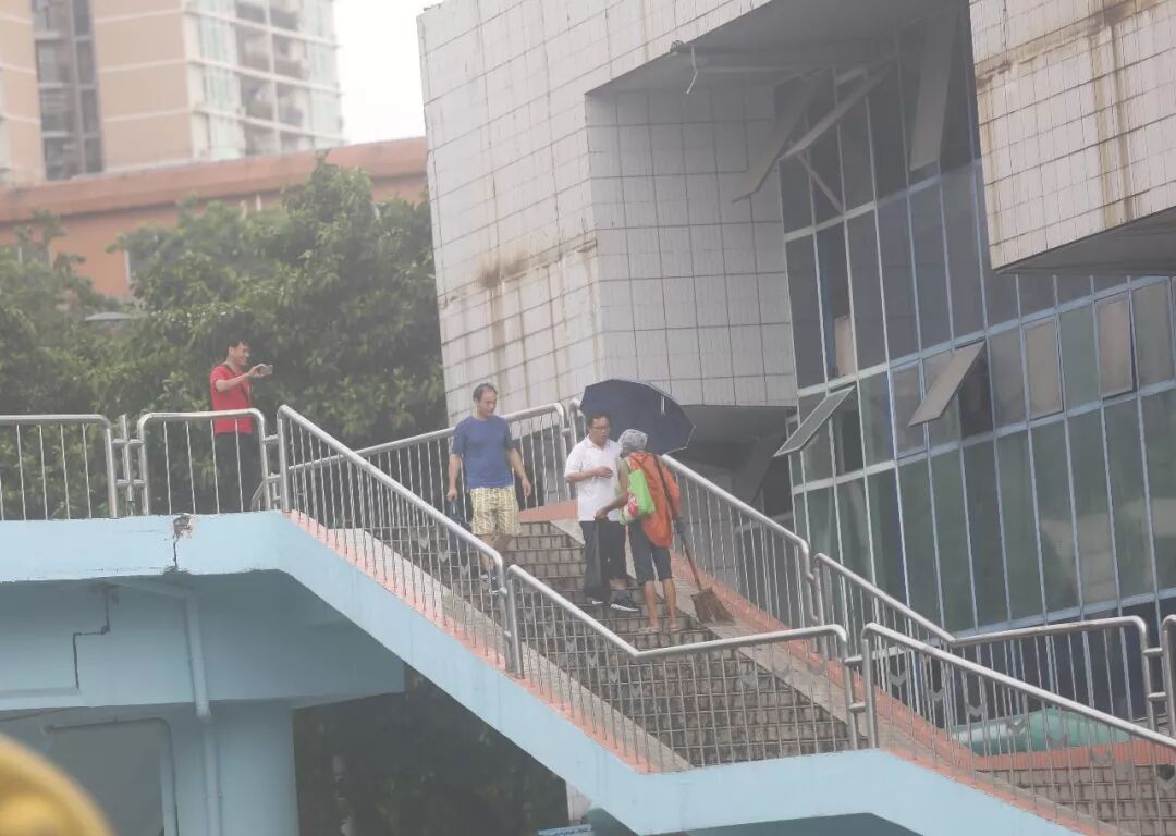 从陈颖“定居”天桥开始,张先生时不时和陈颖聊天,可以说是老熟人了。张先生在一家外企工作,经常接触英语。他说,“这么多年来,陈颖表现出来的学识令人吃惊,英语水平比我高多了。“ “平时,陈颖从不谈及自身过往经历。这几天,他一直沉默;和他说今天有家人来接他回家,他更显沉默,甚至把头别过一边去,胸膛也比平时起伏大。”张先生对记者说,他今天特意抽出时间去超市买了面包等食品来饯行,希望陈颖回家后能重新融入社会。 7月12日,陈颖在沉默中度过了一天,并没有等来家人和同事。原来,陈颖的弟弟在购买火车票时出现了意外情况,行程延误了,直到7月13日才赶到东莞。 陈颖回家受到东莞众多爱心人士的关注。7月13日下午,“让爱回家”志愿者便前来和陈颖家人汇合。“让爱回家”公益组织负责人张世伟说,“陈颖对已定居的天桥有了感情,等会要帮助让陈颖快速离开这里。” 东莞市救助管理站社工杨艳芳得讯也前来帮忙。她说,“陈颖身份证已经遗失,坐火车离开东莞会有些麻烦。今天来现场,是想根据他家人提供的身份证号,到救助站开证明,帮陈颖买票顺利回家。” 7月13日下午,大雨时断时续,陈颖所坐的地方已被雨水打湿。如同纸板遮阳一般,他用一块雨布挡在身前避雨。 在完成写英语的任务后,陈颖披上环卫工马甲,头戴着塑料袋,拿着扫把,开始在雨中打扫卫生。为了让陈颖做好回家的准备,张世伟等爱心人士冒雨试着和陈颖沟通,但陈颖不说话,只顾低头扫地。 下午4时许,陈颖的弟弟和他同学彭先生从武汉赶到东莞,与正在天桥上打扫卫生陈颖见面。没有故人重逢的喜悦,只有无数个“不认识”。陈颖并不想和家人与同事相认。