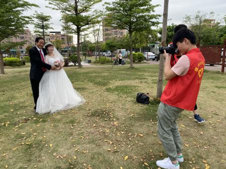 由于时代原因,一些中老年夫妻结婚时没有拍摄婚纱照,留下了一个遗憾。为让社区中老年夫妻圆一个“婚纱梦”,3月15日,大众驻常平土塘社区综合服务中心开展&ldq